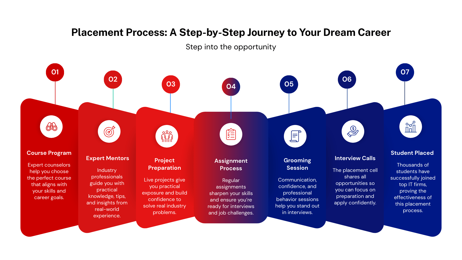 Our job-oriented programs help students develop real-world skills that employers value, making them job-readyfrom day one. Guided by experienced industry mentors,learners gain exposure to in-demand tools andtechnologies, along with continuous support from skill development to placement assistance.